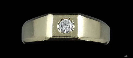 Solid Heavy Weight 14k Yellow Gold & Brilliant Diamond Ring Size 10.5