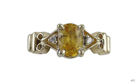 Superb 14k Gold Yellow Sapphire & Diamond Ring Size 3.75