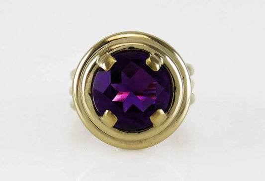 Vintage Retro Deco Style 14K Yellow Gold 4.25 CT Amethyst Gemstone Ring