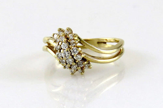 Wonderful Quality 14K Yellow Gold 21 Diamond Gemstone Bypass Ring