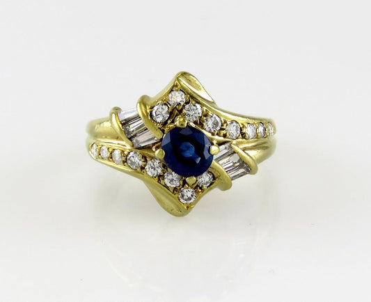 18K Yellow Gold .73 CT Sapphire & .61 CT Diamond Statement Ring