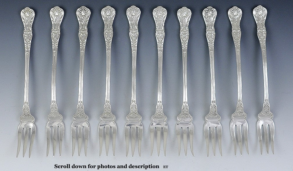 10 Antique c1895 Sterling Silver Gorham New Queens Seafood Cocktail Forks