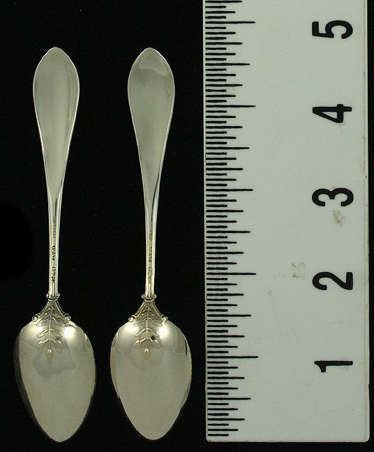 The spoons are marked on the reverse with Gorham’s old company hallmarks, Sterling and Pat. 71.