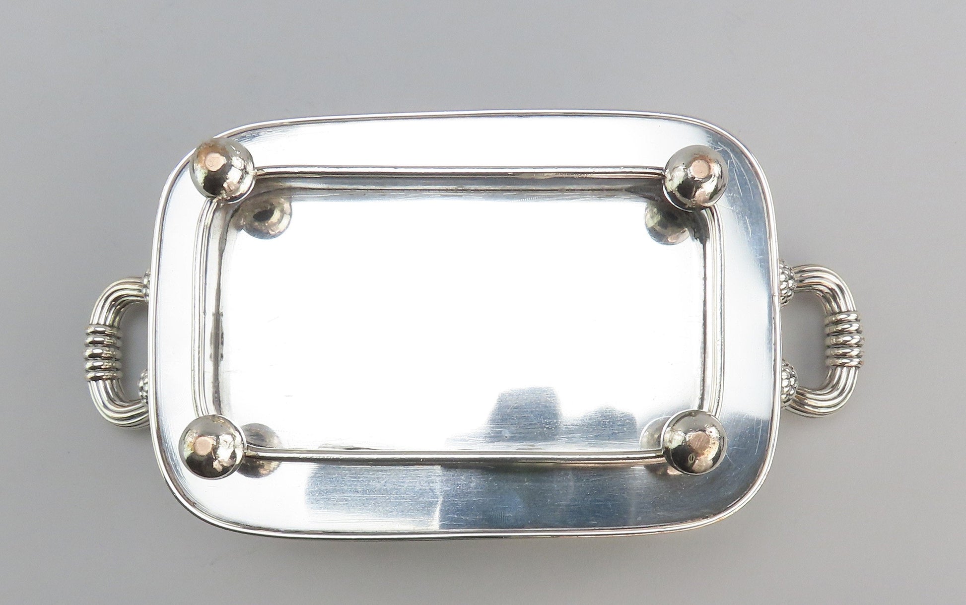 The piece is in great overall condition, especially considering age. There are a few spots where the silver is worn to reveal the copper underneath, mostly on the handles. There are no dents, no splits, no breaks, and no repairs.
