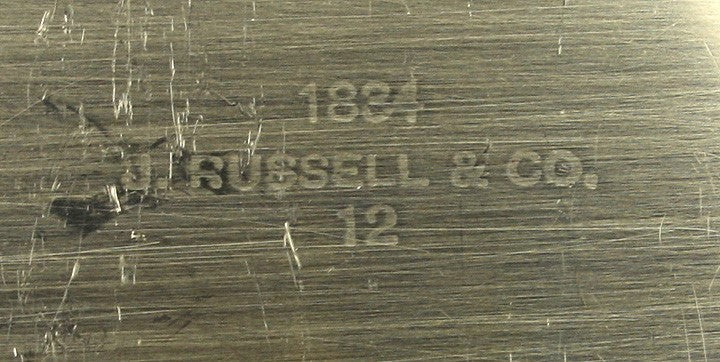 The seven knives with the old silver plated carbon steel blades are marked J. Russell & Co. The other five knives are marked Stainless on the blades.