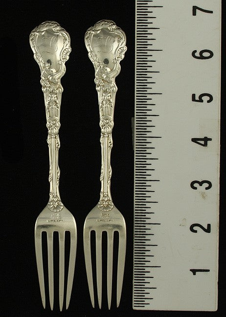 Each fork is marked with the Gorham hallmark, sterling and copyrighted. These pieces are all old production.