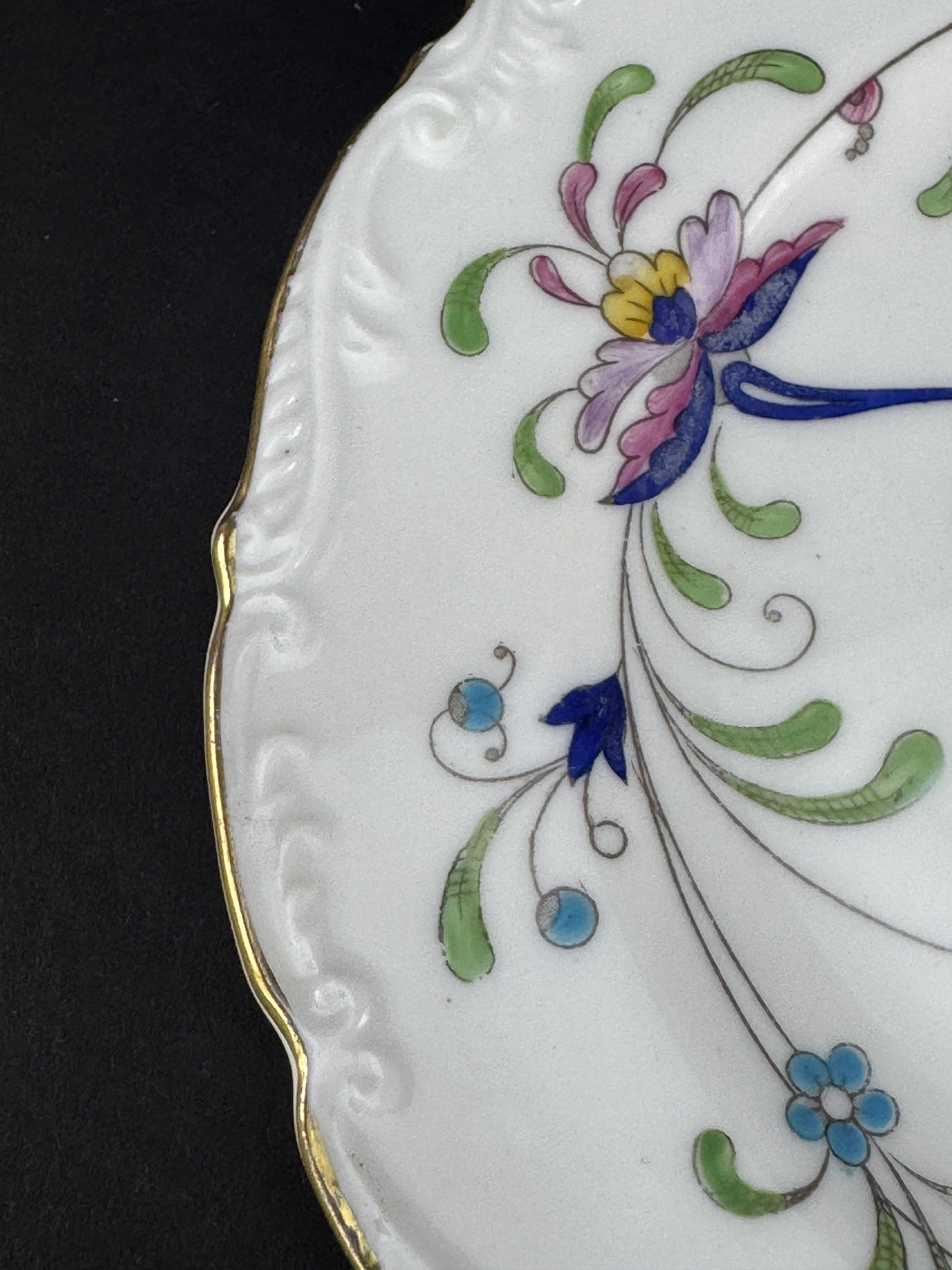 This pattern is identical to Coalport's Pageant pattern, except that the edge of the pageant pattern is smooth and not wavy.