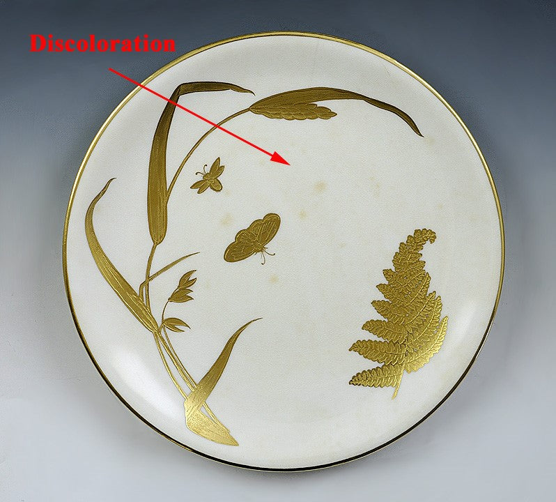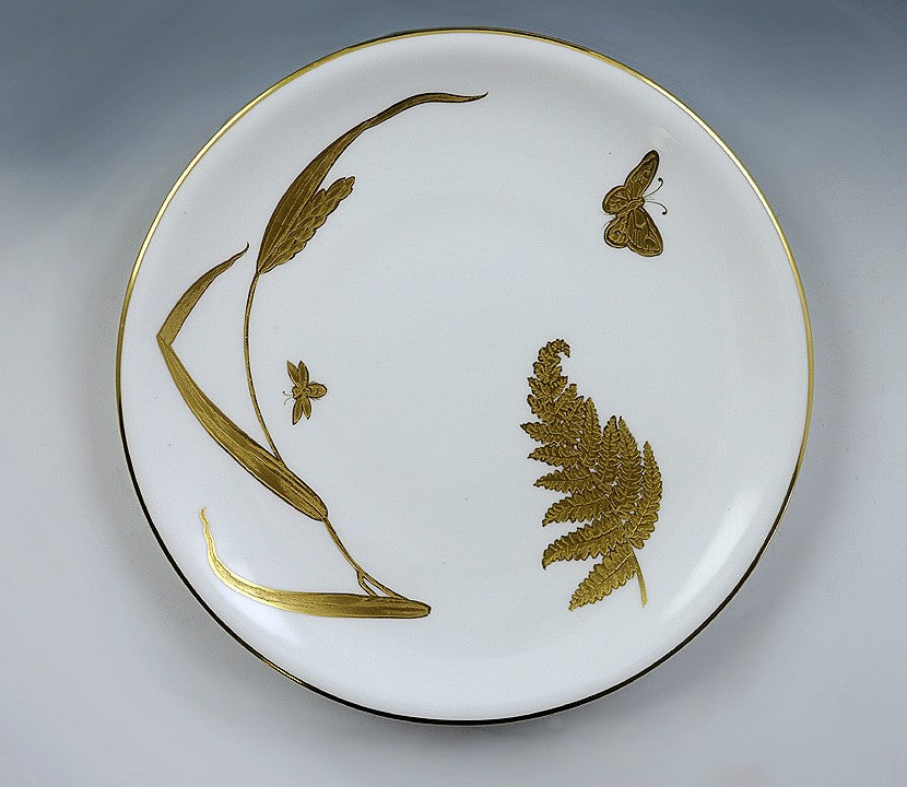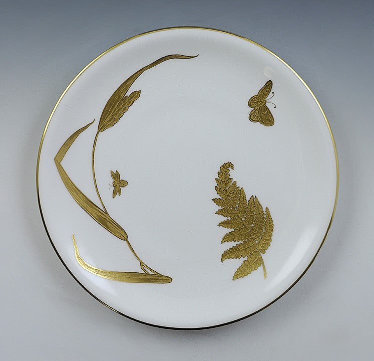 11 English Mintons 1878 Gilt Porcelain Butterfly and Fern Plates