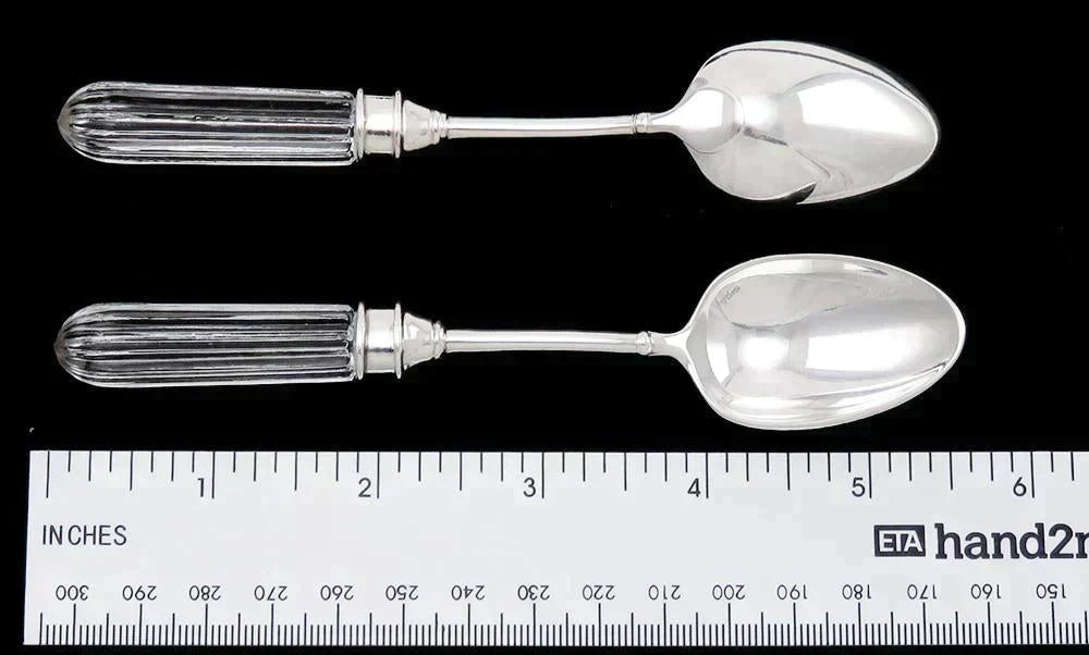11 French Siecle Fidelio Crystal & Silver Plate Tea/Coffee Spoons 5 5/8”
