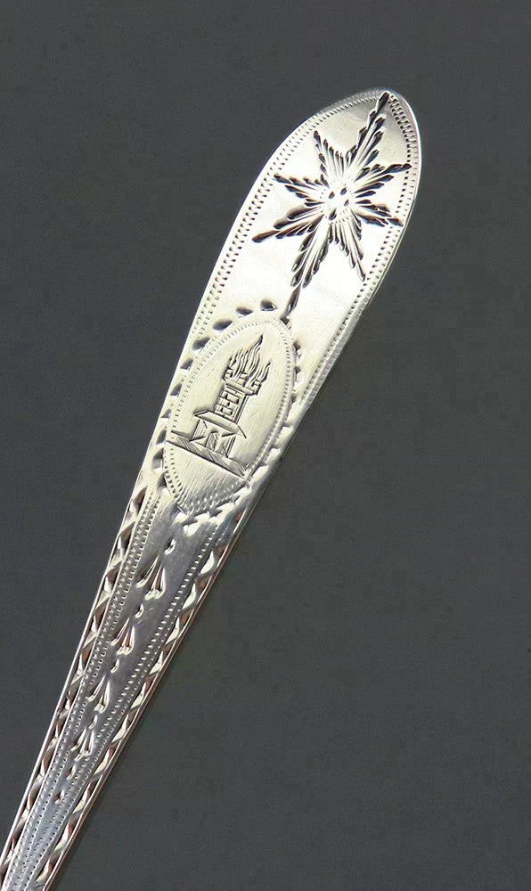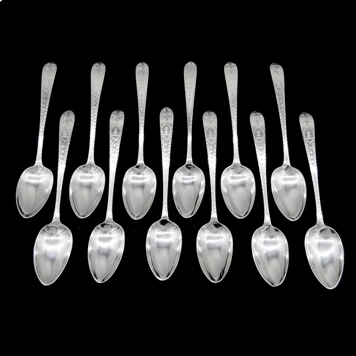 12 1801 Sterling Silver Irish Star Dessert or Place Spoons w Hopkins Crest