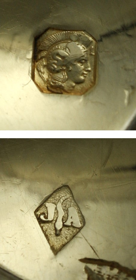 Each spoon is marked with the French first standard Minerva head mark for .950 purity silver, and a maker’s mark for Joseph Adoue.