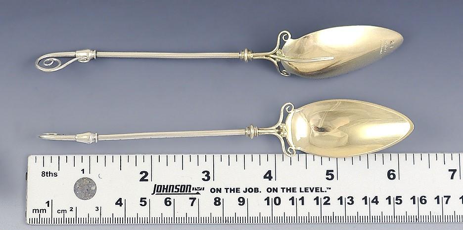 12 Antique Aesthetic Movement Leaf Gold Wash Sterling Silvers Gorham Spoons