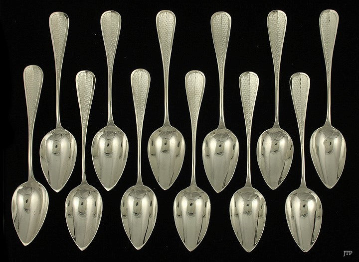 12 Antique c1890 French 950 Sterling Silver Place Dessert Spoons 6 7/8"