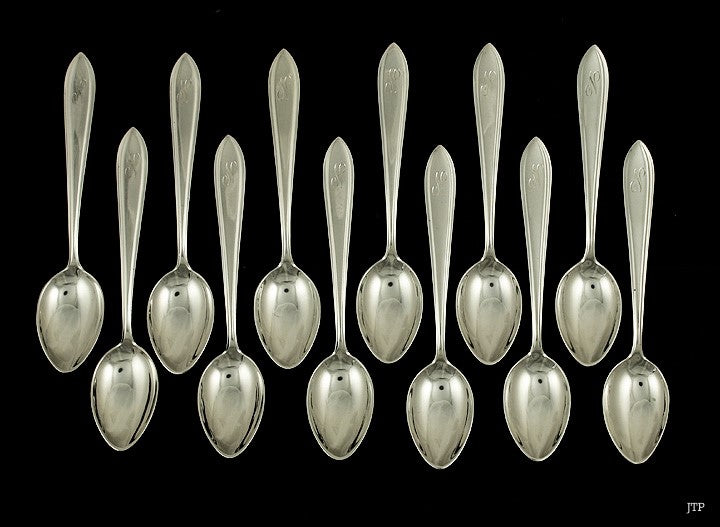 12 Antique c1910 Dutch Silver Pointed Tip Demitasse Spoons 4 1/2"