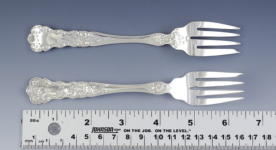 The forks are in great condition. The details of the pattern are quite crisp. There are no breaks, no bends, no monograms, no monogram removals and no repairs.