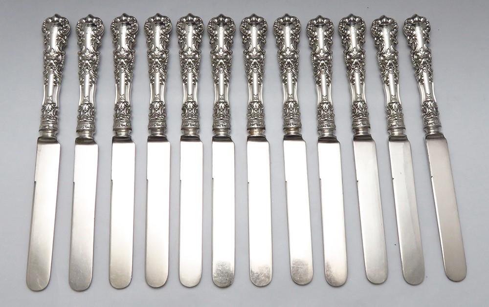 12 Antique International Silver Co Avalon Pattern Sterling Silver Dinner Knives