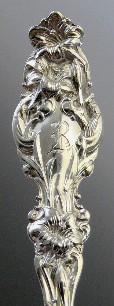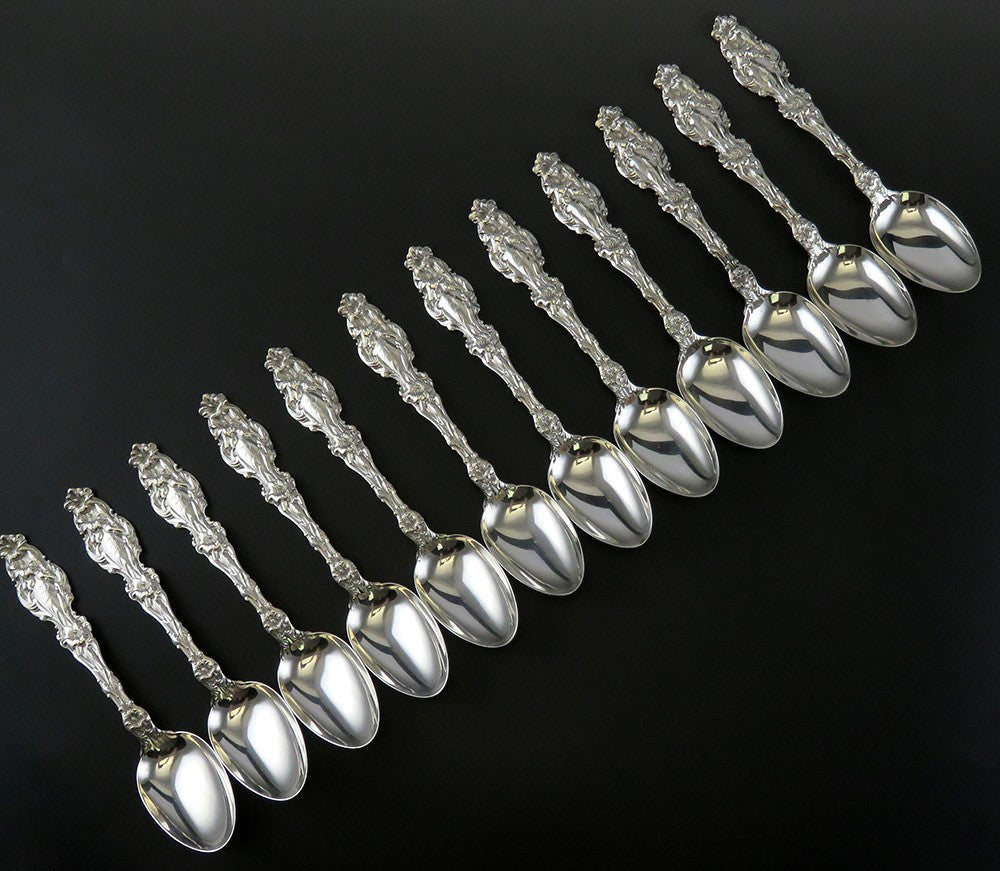 12 Antique Sterling Silver Whiting Lily 1902 Art Nouveau Teaspoons 6" R Mono