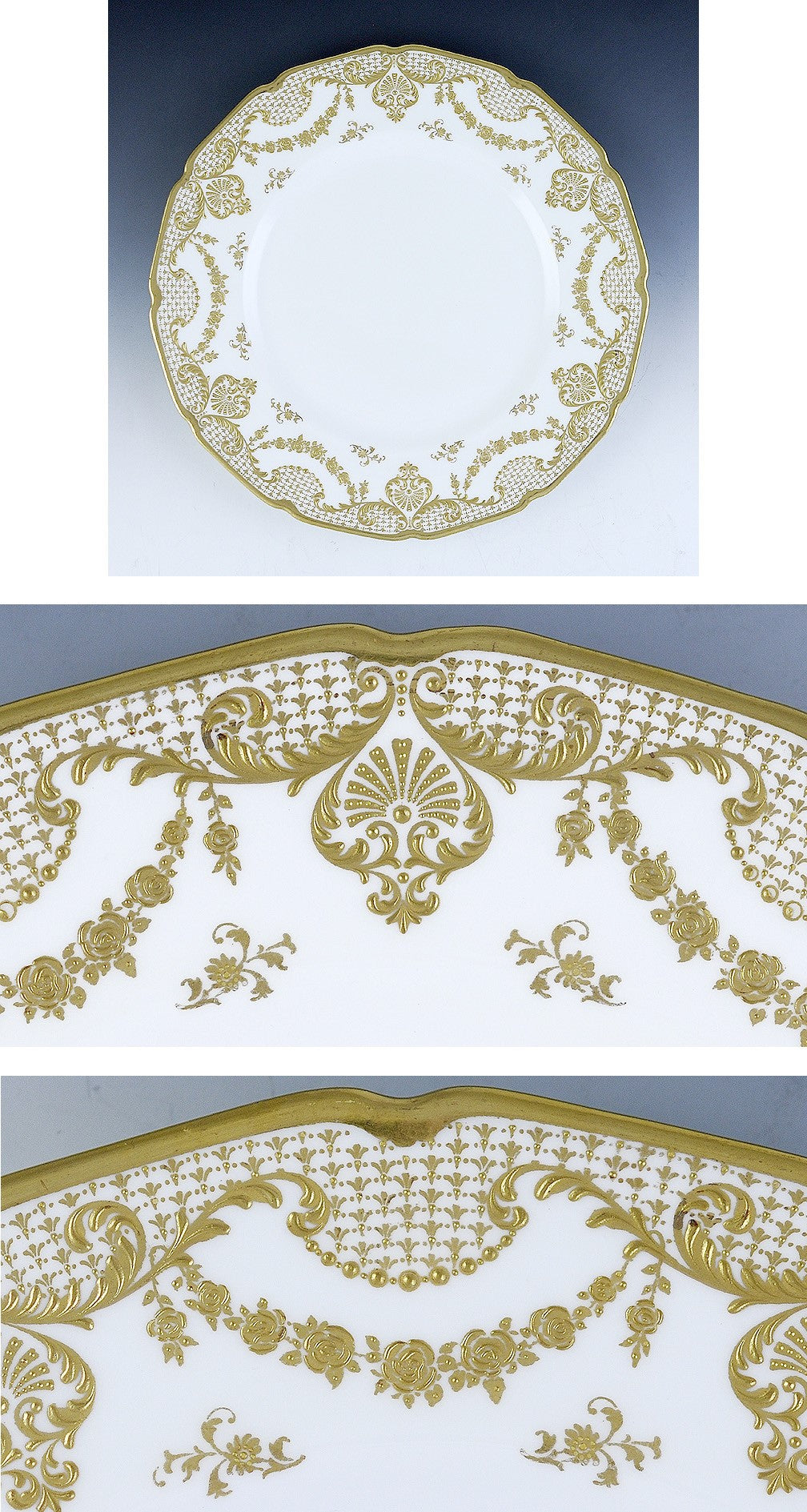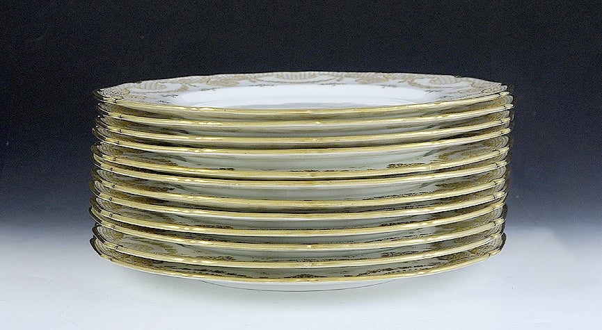 12 c1920 English Porcelain Royal Doulton Gilt Dinner Plates