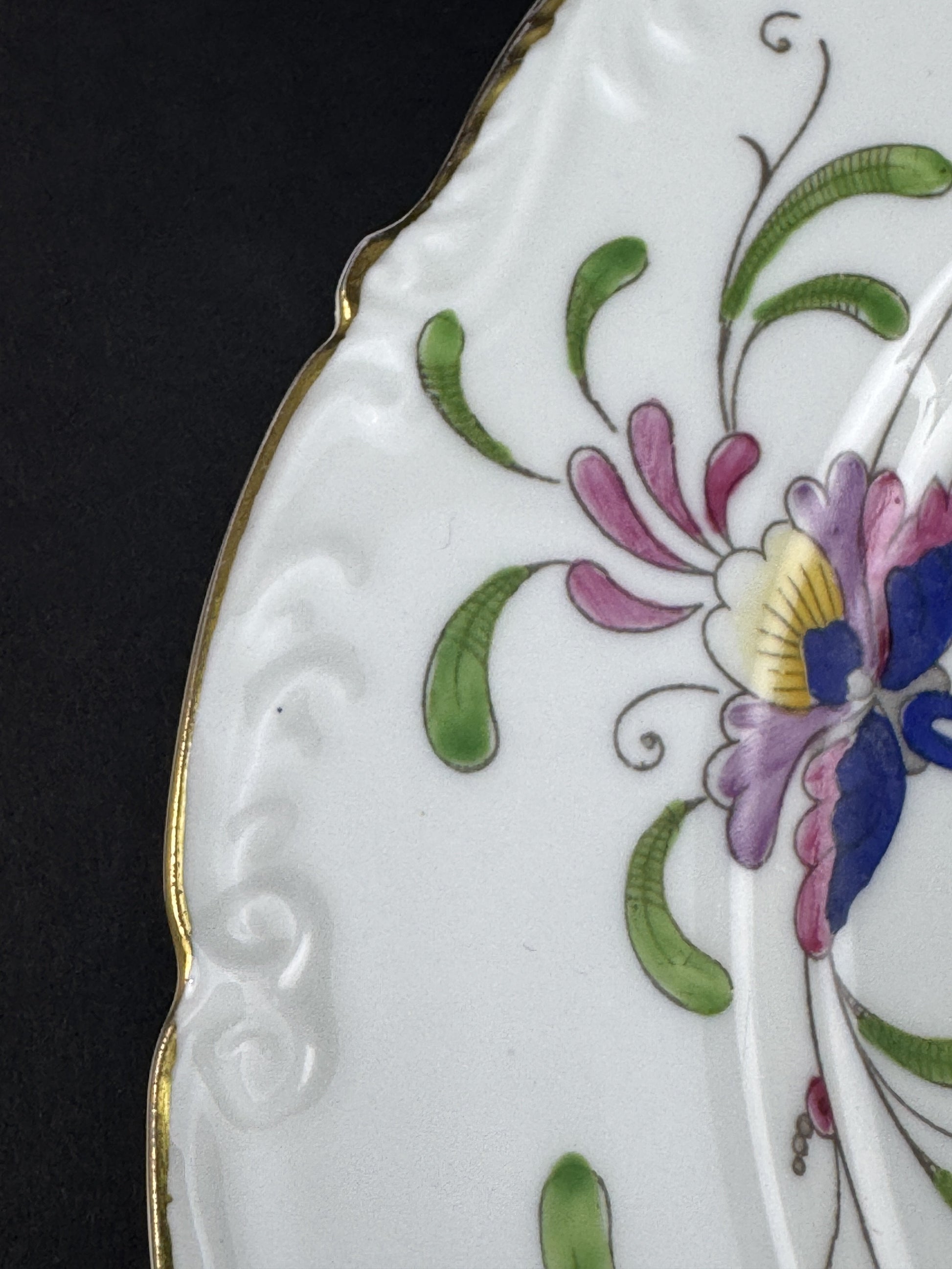 This pattern is identical to Coalport's Pageant pattern, except that the edge of the pageant pattern is smooth and not wavy.