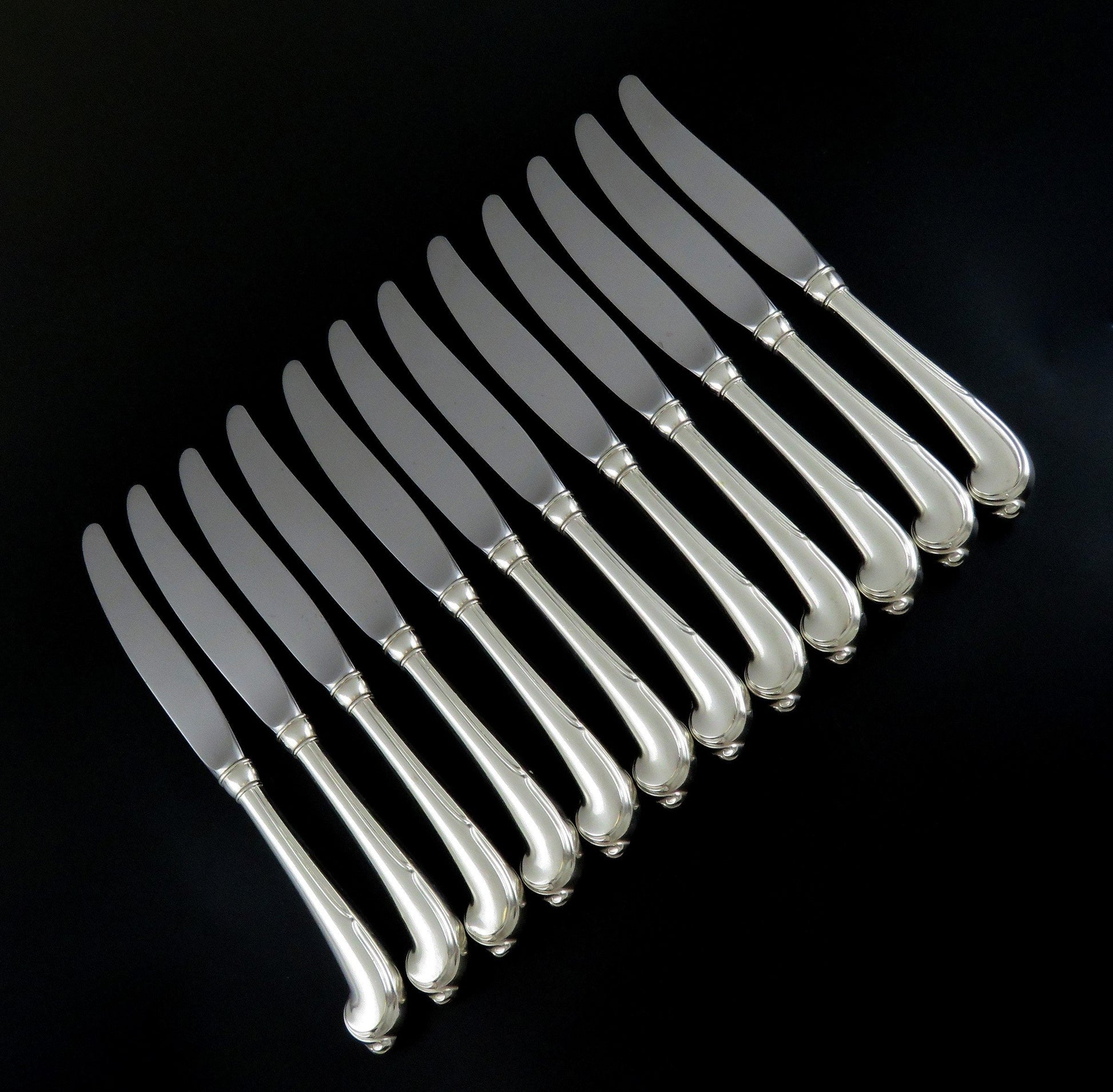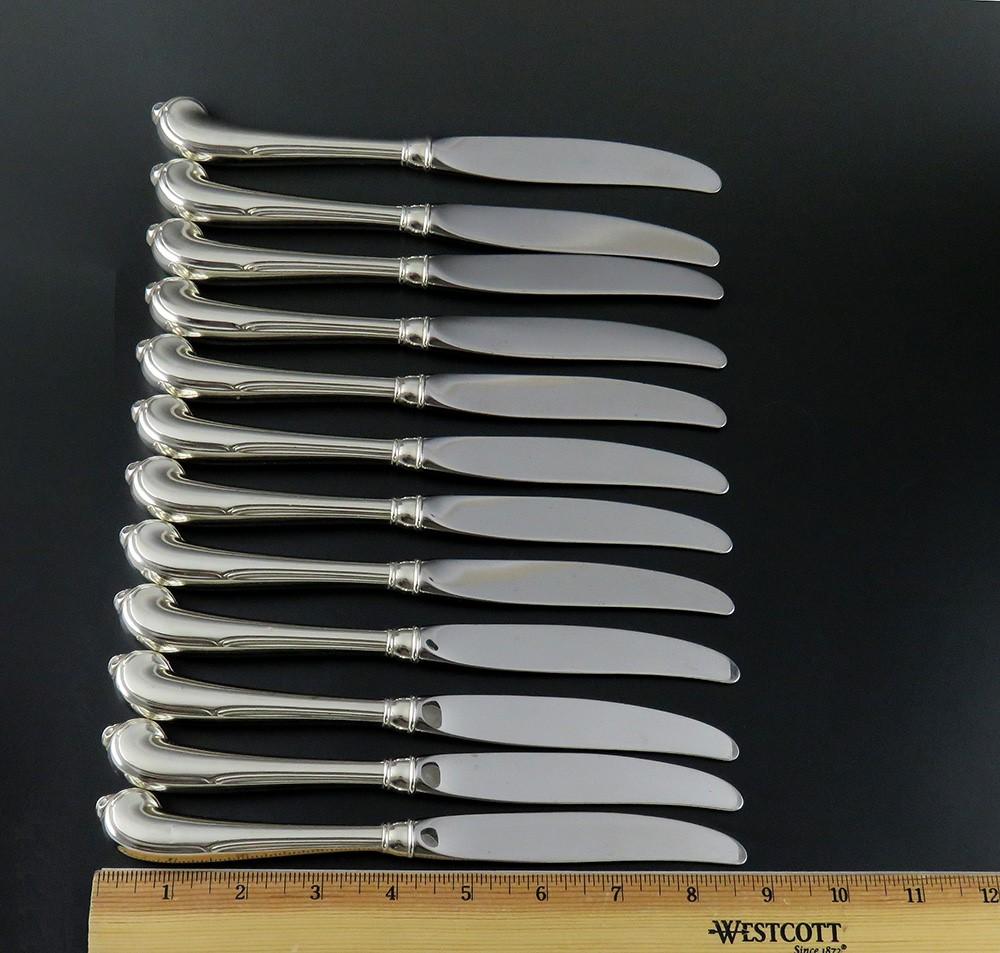 12 Fine Sterling Silver Wallace Grand Colonial 1942 Pistol Handle Knives 8 3/4"