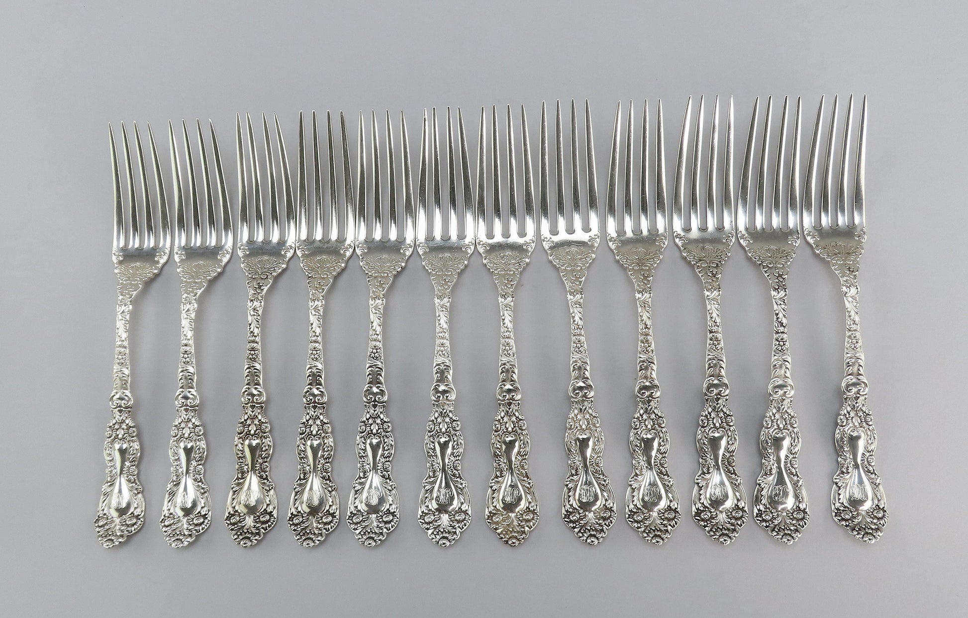 12 Gorgeous Gorham Imperial Chrysanthemum Sterling Silver Forks 6 7/8 Inches