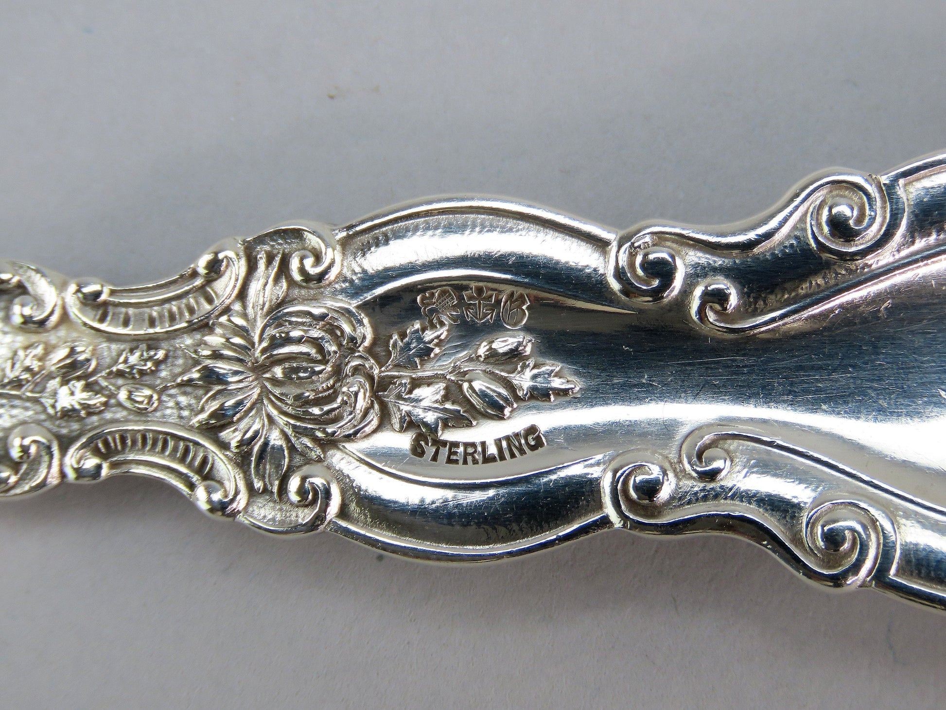 The reverse of each piece is marked sterling along with the maker's mark for