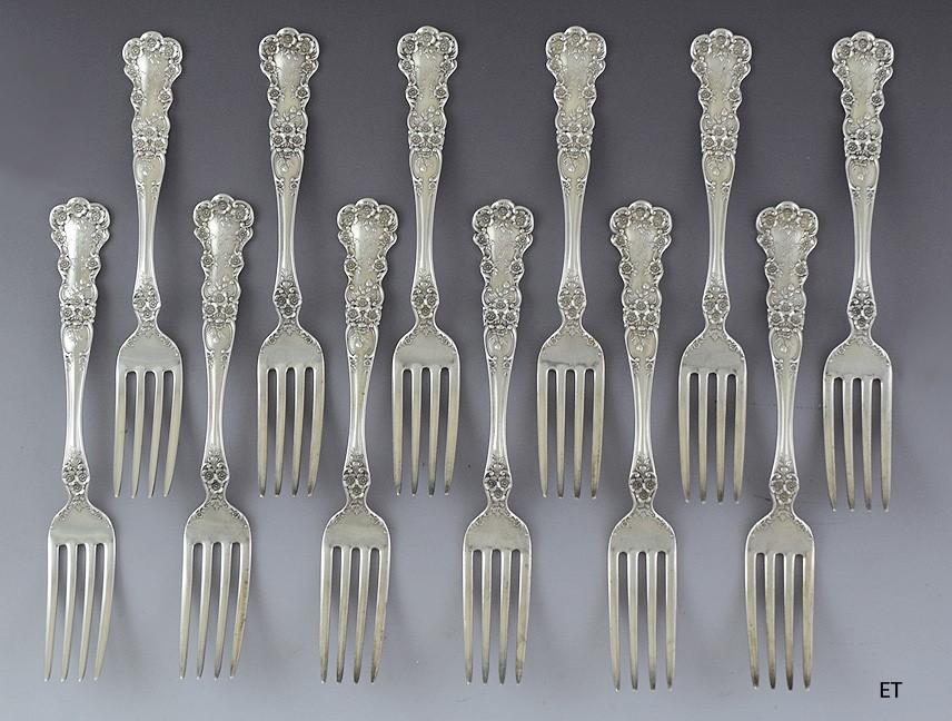 12 Gorham Sterling Silver Buttercup 1908 True Dinner Forks 7 1/2"