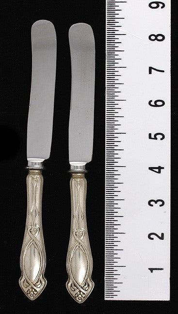 Seven of the knives are stamped 800 on the handles for the silver purity.