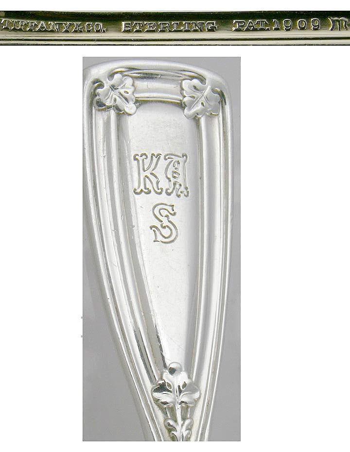 Each piece is marked Tiffany & Co, sterling and patent 1909, and the letter m indicating a production date of 1907 to 1937.