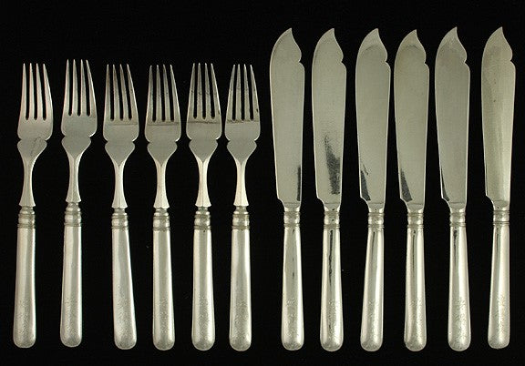 12pc Antique c1900 Chinese Export Silver Fish Set Forks Knives