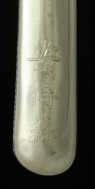 Presented is a great old Chinese export silver fish set. Each piece has an elegant rounded handle engraved with Chinese characters. The set was likely made in the late 1800s or early 1900s.These pieces are solid and everything is silver.