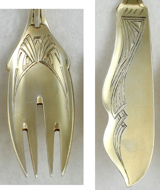 13pc Heavy Antique German Jugenstil Art Nouveau Fork Slice Fish Pastry Server