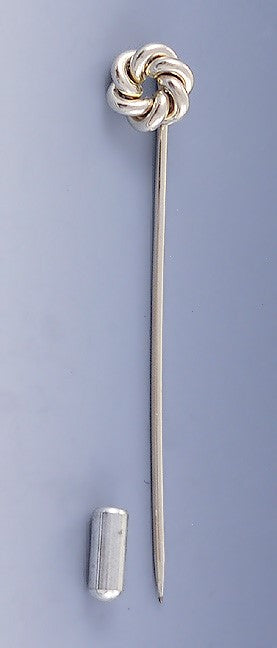 The head of the pin is 14 karat gold, nitric acid tested and guaranteed. The shaft is 10 karat gold, nitric acid tested and guaranteed.