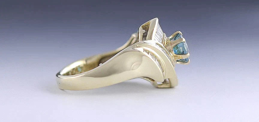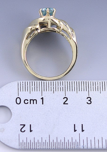 14K Yellow Gold Bright Blue Natural Zircon Gemstone Diamond Ring Size 10