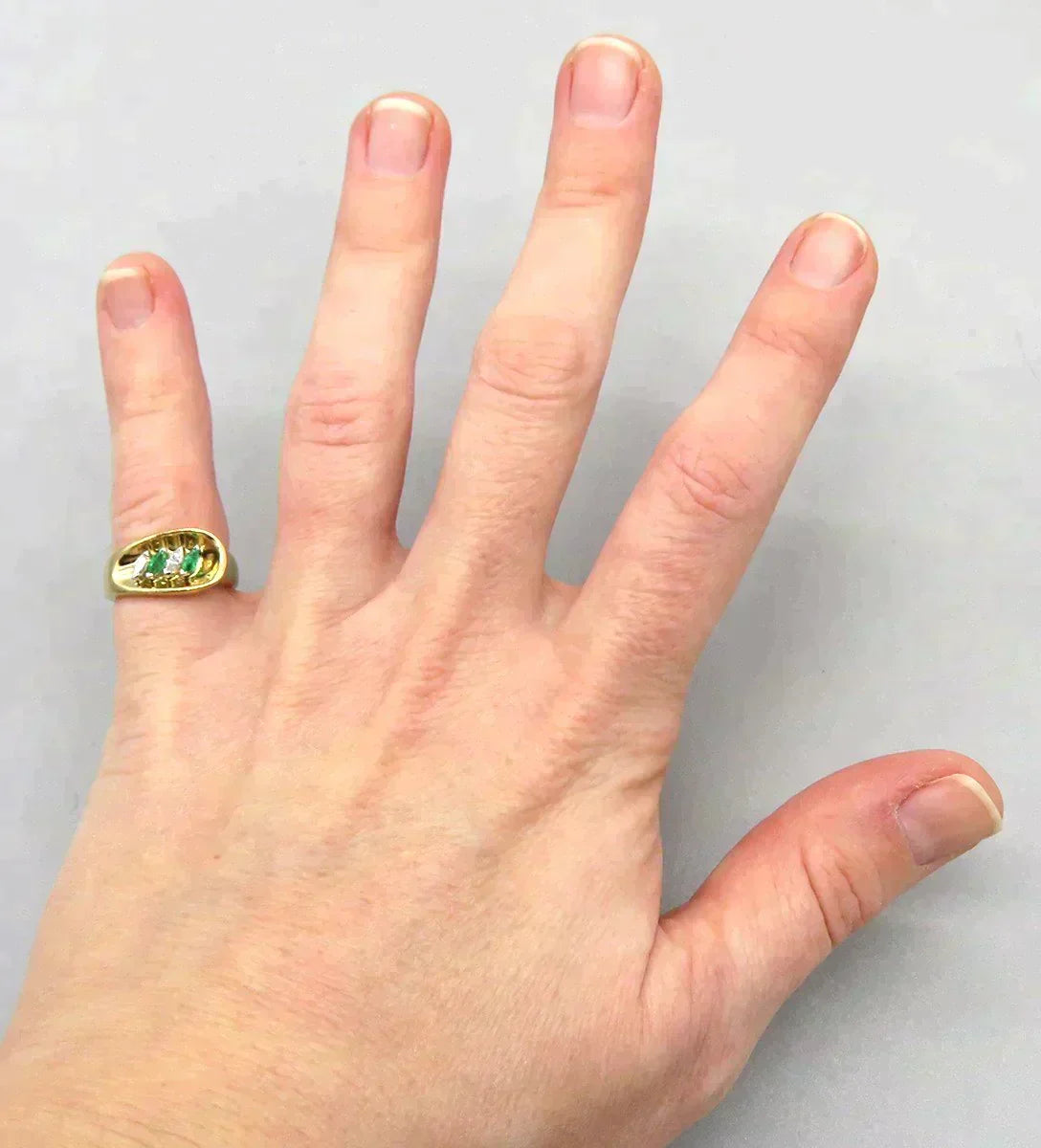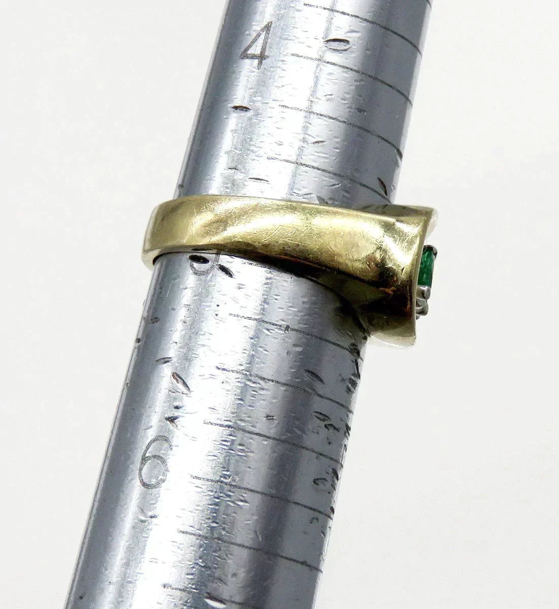 14K Yellow Gold Platinum Prong Setting Diamond Emerald Band Ring