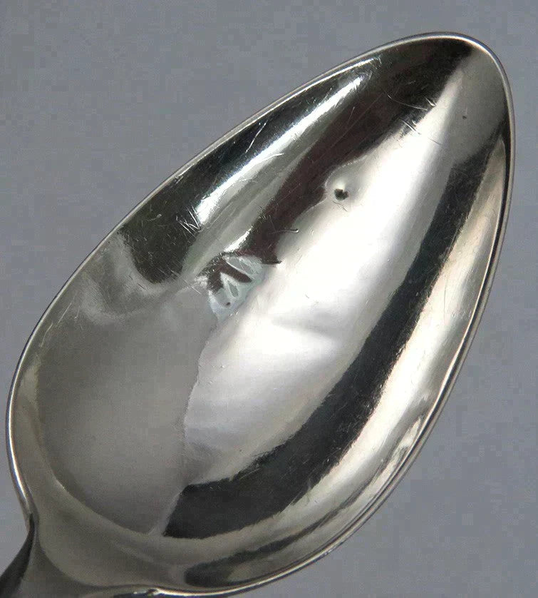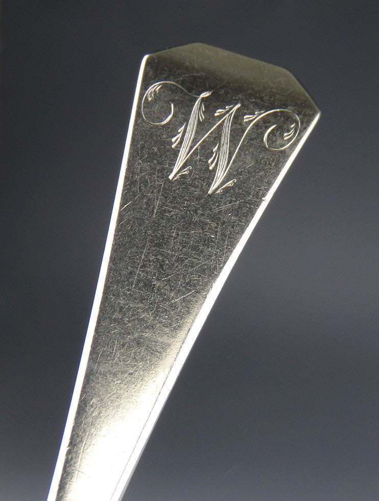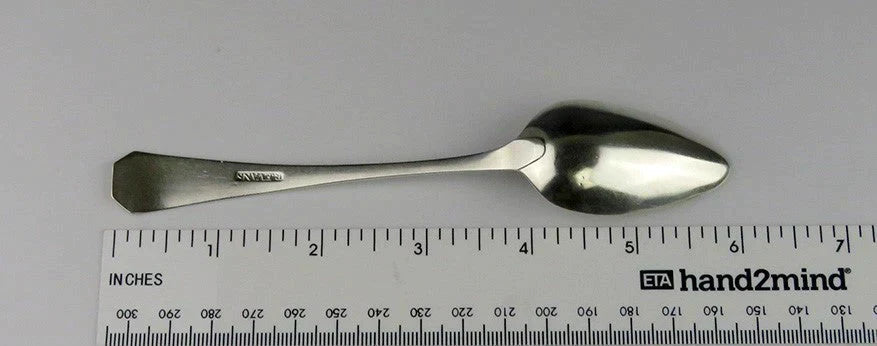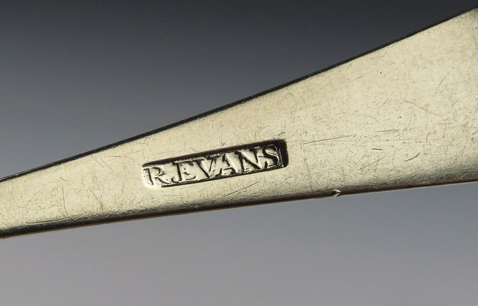 Each spoon is marked with the maker's mark for Robert Evans, a Boston silversmith active circa 1798-1810. The spoons are tested and guaranteed coin (900) purity silver.