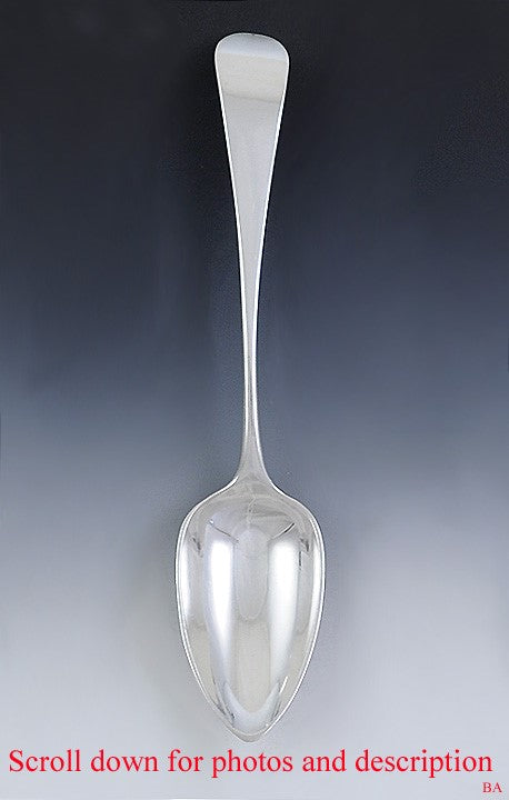 Presented is a very nice old Georgian sterling silver table spoon or serving spoon. The spoon was made with drop construction in the Old English pattern, which is very similar to the Hanovarian pattern. The spoon was made in 1797 in Exeter. The spoon has never been monogrammed.