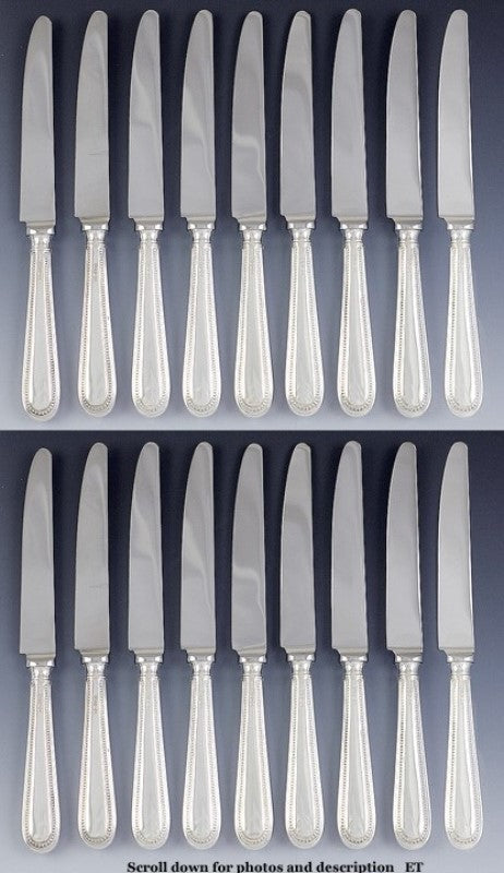 18 English Sterling Silver Georgian Style Beaded Edge Heavy Dinner Knives 9 3/4"