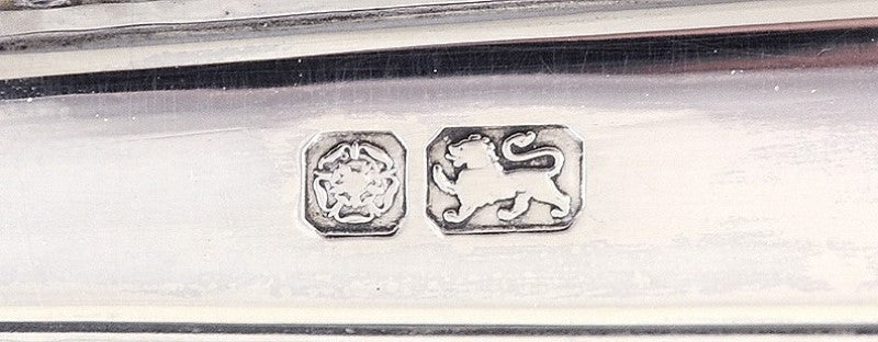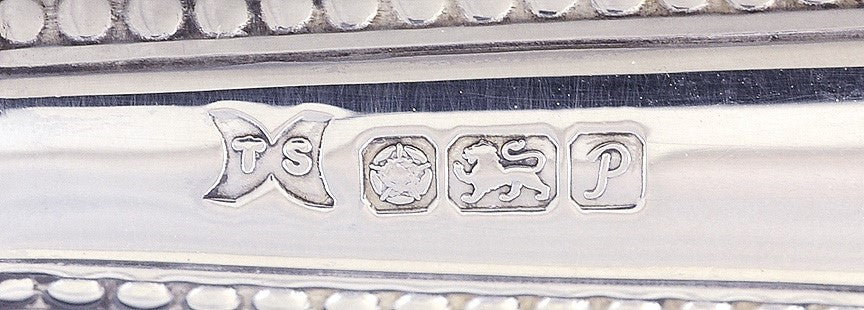 Each knife is marked with the Sheffield star city mark, the lion passant for sterling silver purity, a date letter P for the year 1989 and a maker's mark for Terry Shaverin.
