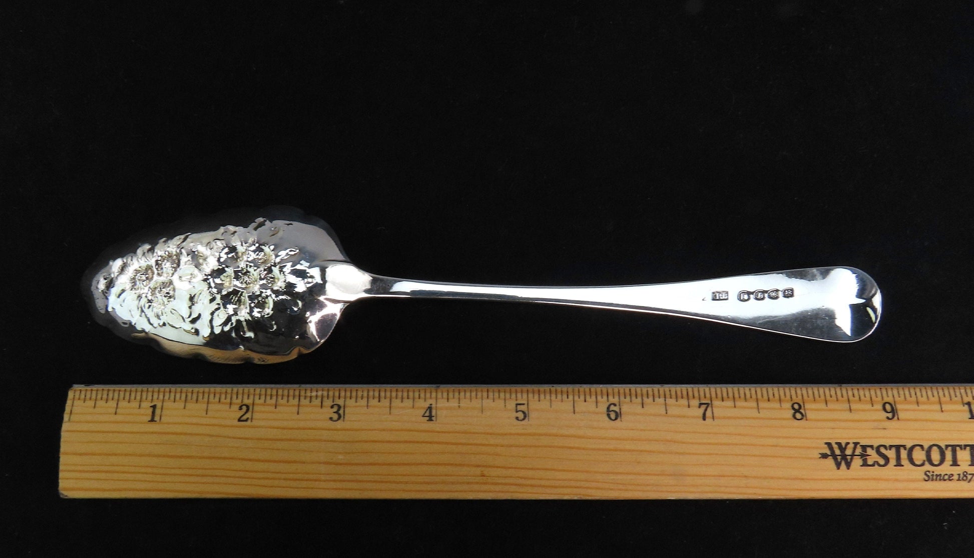 1813 Lovely English Sterling Silver Serving Spoon Floral Chased Bowl Gilded 9"