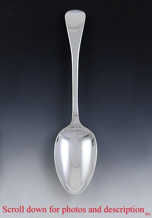 Presented is a very nice old Georgian sterling silver table spoon or serving spoon. The spoon was made with drop construction in the Old English pattern, which is very similar to the Hanovarian pattern. The spoon was made in 1816 in London. The spoon has never been monogrammed.