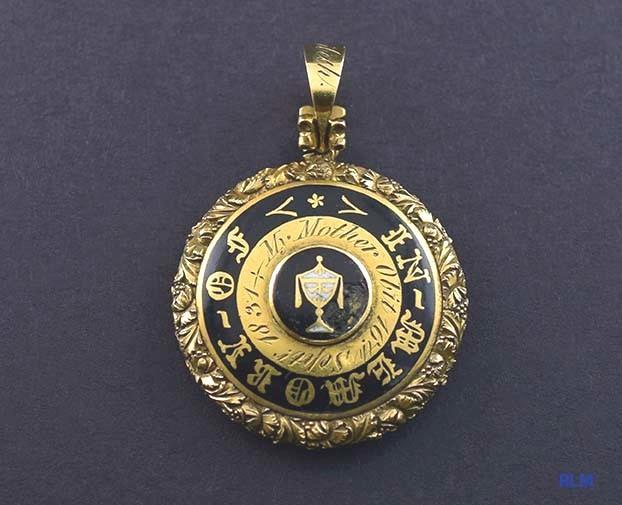 1831 Antique American 18k Gold Black Enamel Memorial Pendant
