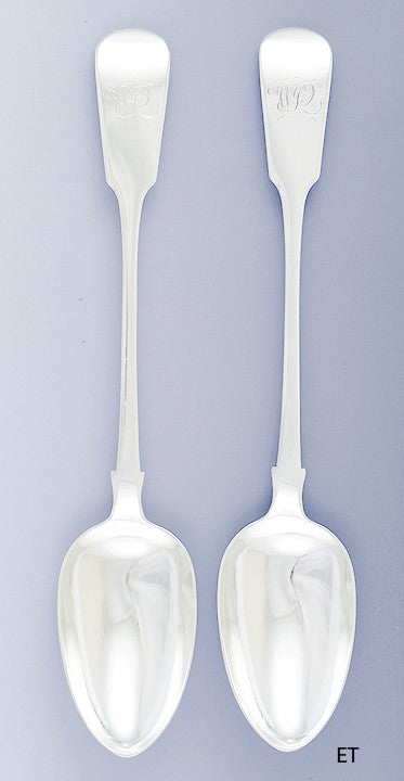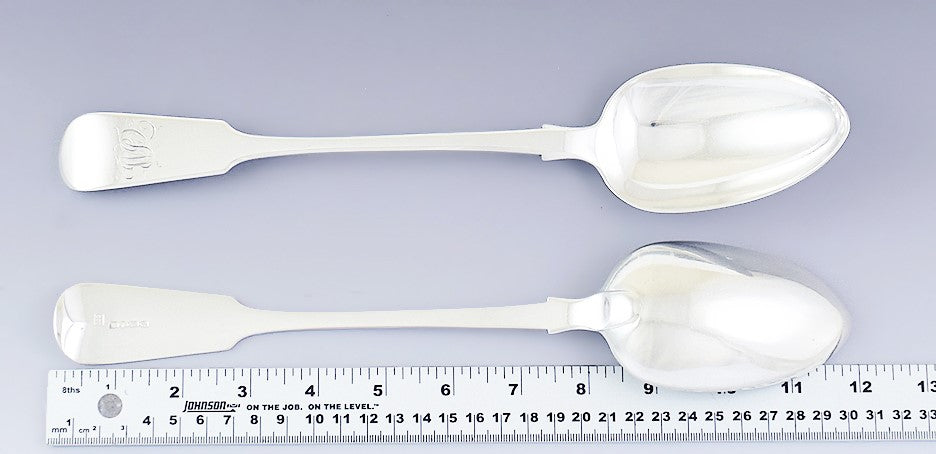 1831 Fine Pair English Georgian Sterling Silver Serving Platter Stuffing Spoons