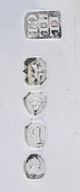 Each spoon is hallmarked on the underside with the lion passant for sterling silver, the leopard's head for the city of London, the date letter q for 1831, King George IV's head duty mark, and the maker's mark for John, Henry & Charles Lias.