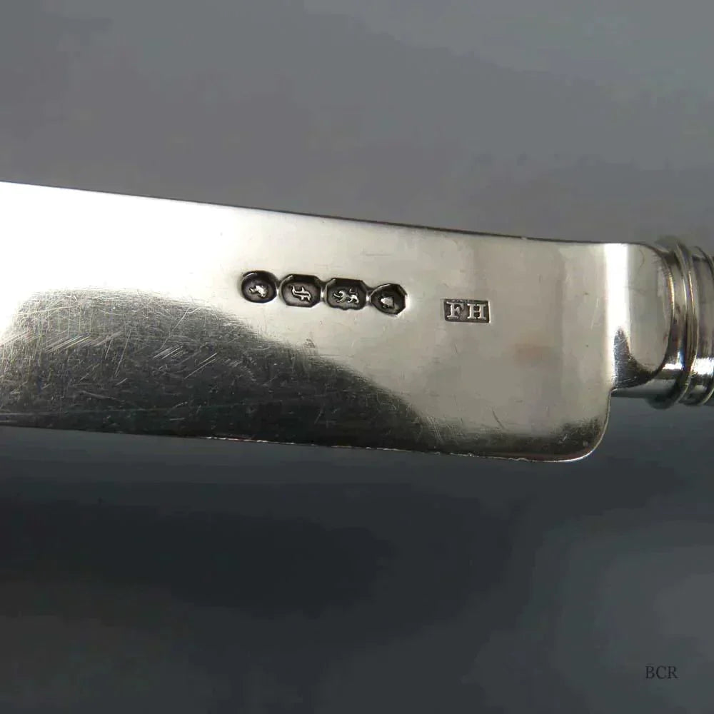 Each piece is hallmarked with the lion passant for sterling silver, the leopard's head for the city of London, the date letter F for 1841 Queen Victoria's duty mark, and the maker's mark for Francis Higgins.