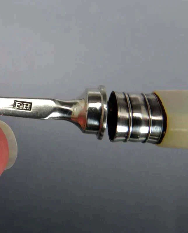 The total weight for the set is 262 grams. Due to the mother of pearl handles, not all of this weight is sterling silver.