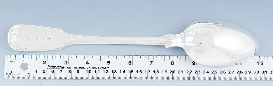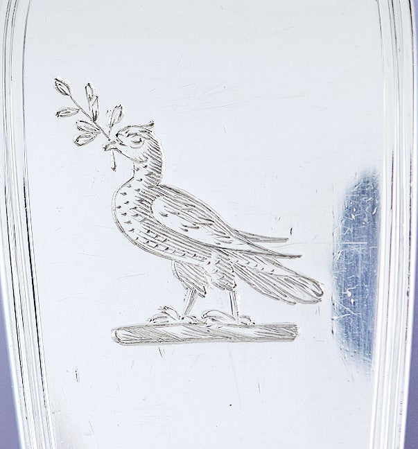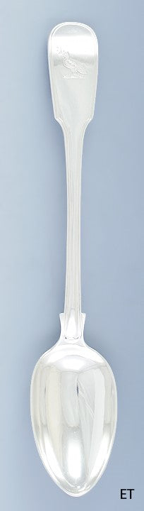 1843 Victorian English Fiddle Sterling Silver Dove Crest Platter Stuffing Spoon