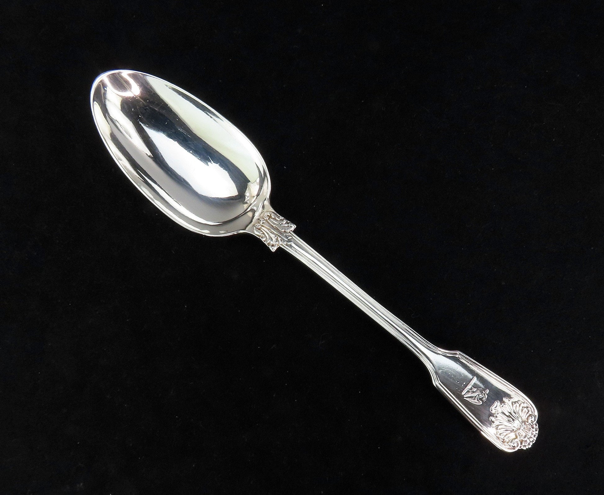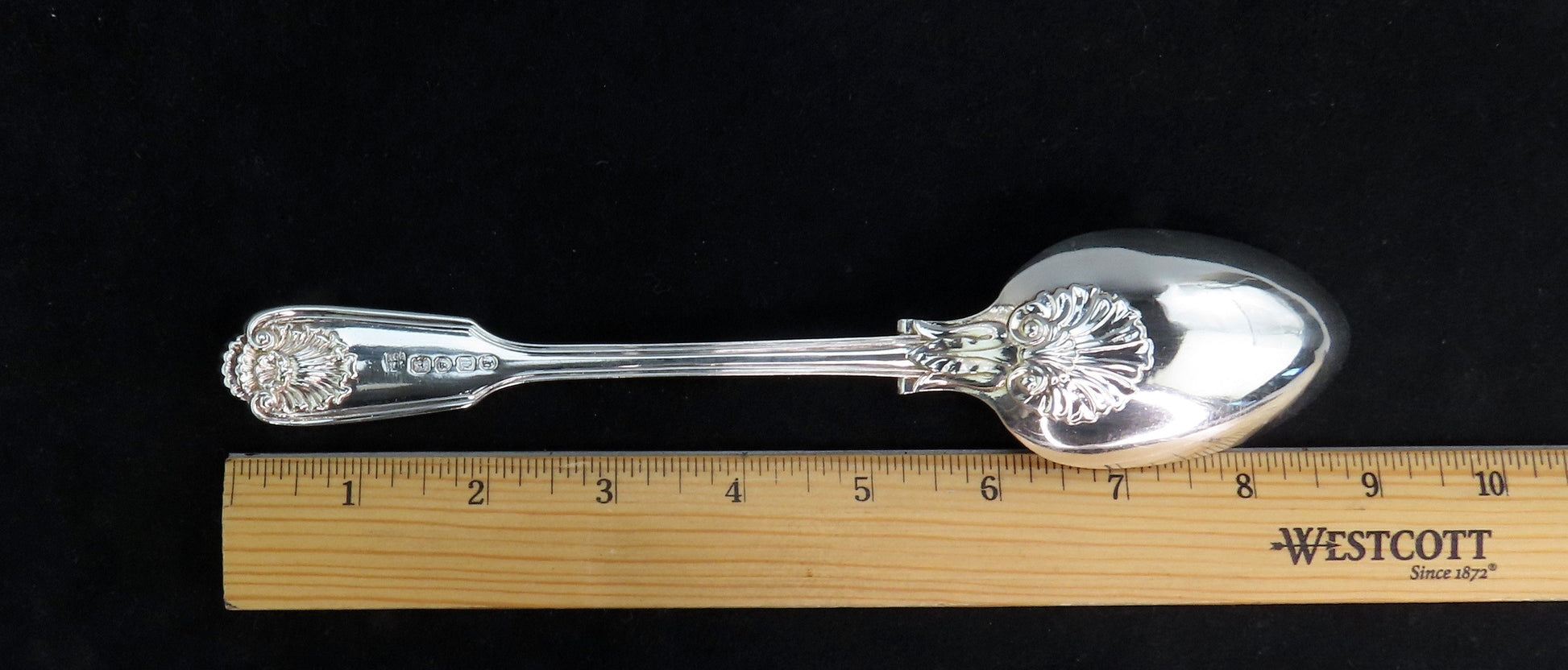 1854 Fiddle Shell Thread English Sterling Silver Serving Spoon Eagle Crest 9in
