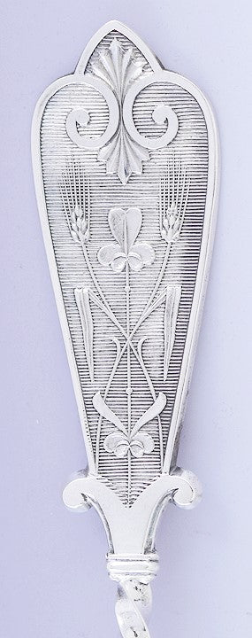 This piece is in great condition. The details of the pattern on the handle are quite crisp. There are no splits, no breaks, no dents, no monograms, no monogram removals, and no repairs.