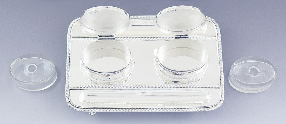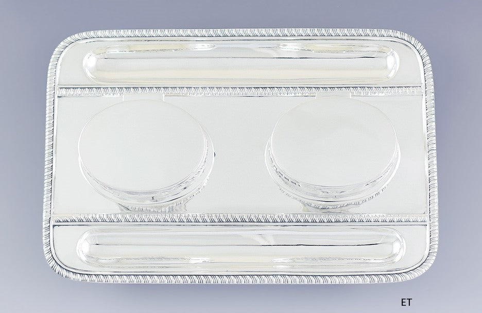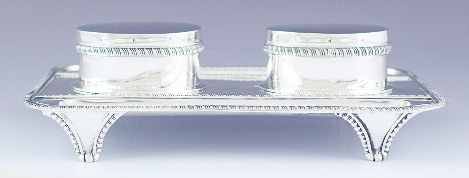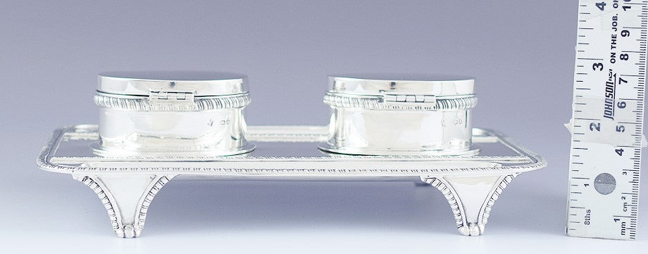 1892 Superb English Sterling Silver Double Partners Inkwell Stand